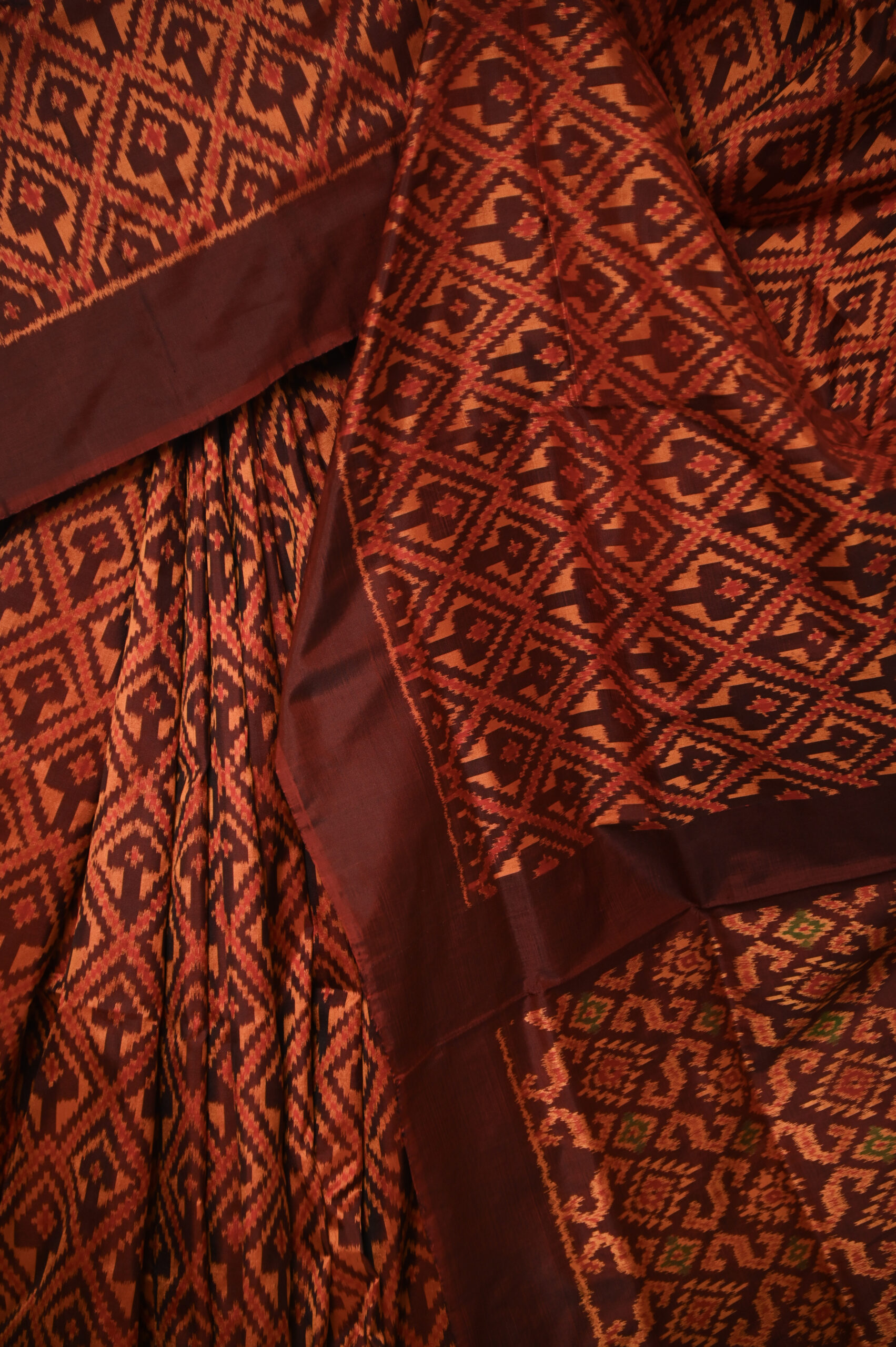 ORANGE DUAL TONE TELIA SILK SAREE WITH IKKAT WEAVE AND BLOUSE PIECE