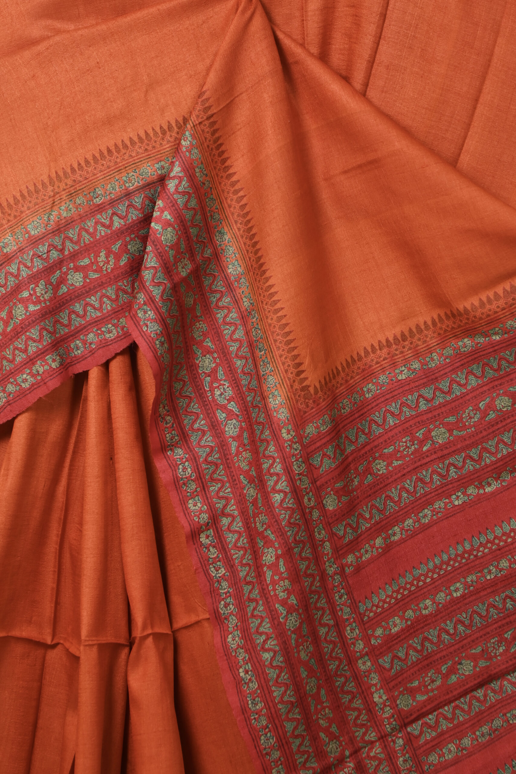 ORANGE TUSSAR SAREE WITH RED PRINTED BORDER AND PALLU WITH BLOUSE PIECE