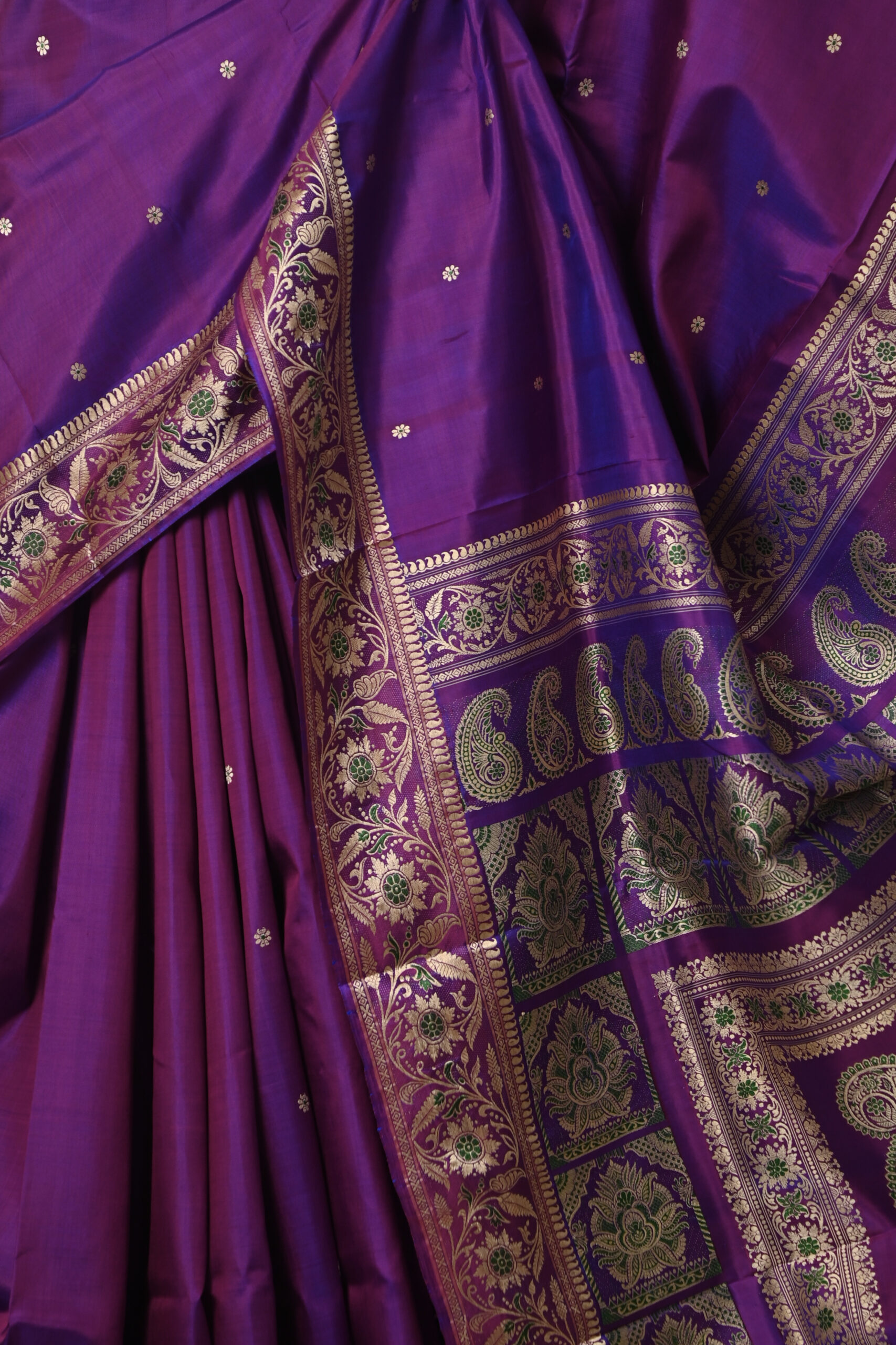PURPLE BALUCHARI SAREE WITH THREAD WORK AND BLOUSE PIECE