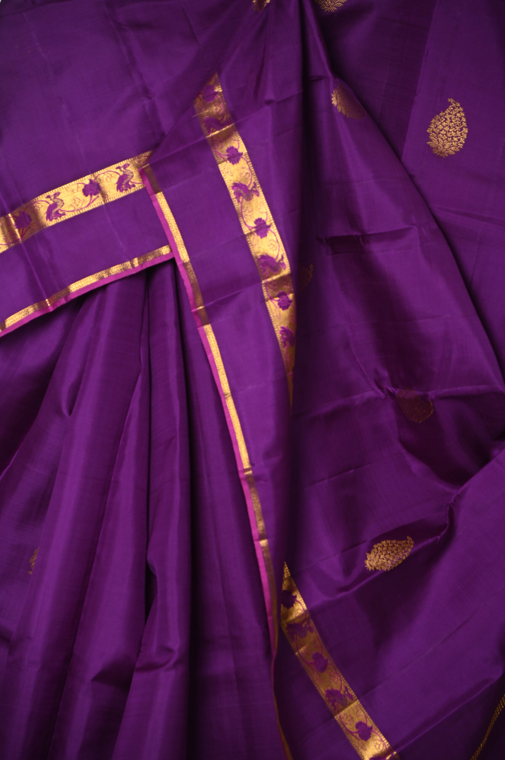 PURPLE KANJEEVARAM SAREE WITH ZARI MOTIF AND BORDER AND PALLU AND BLOUSE PIECE