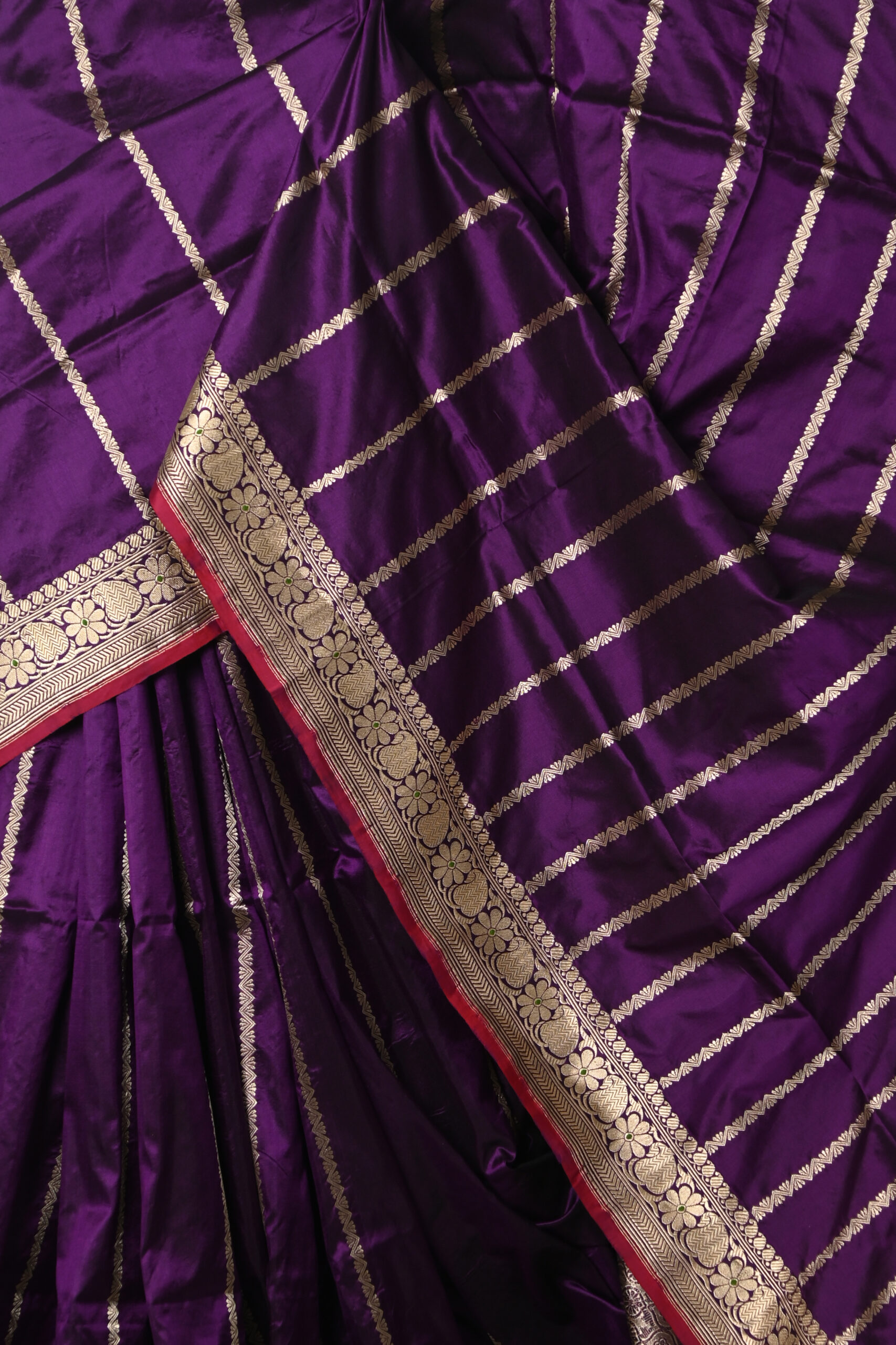 PURPLE KATAN BENARASI SAREE WITH ALL OVER ZARI WORK AND BLOUSE PIECE