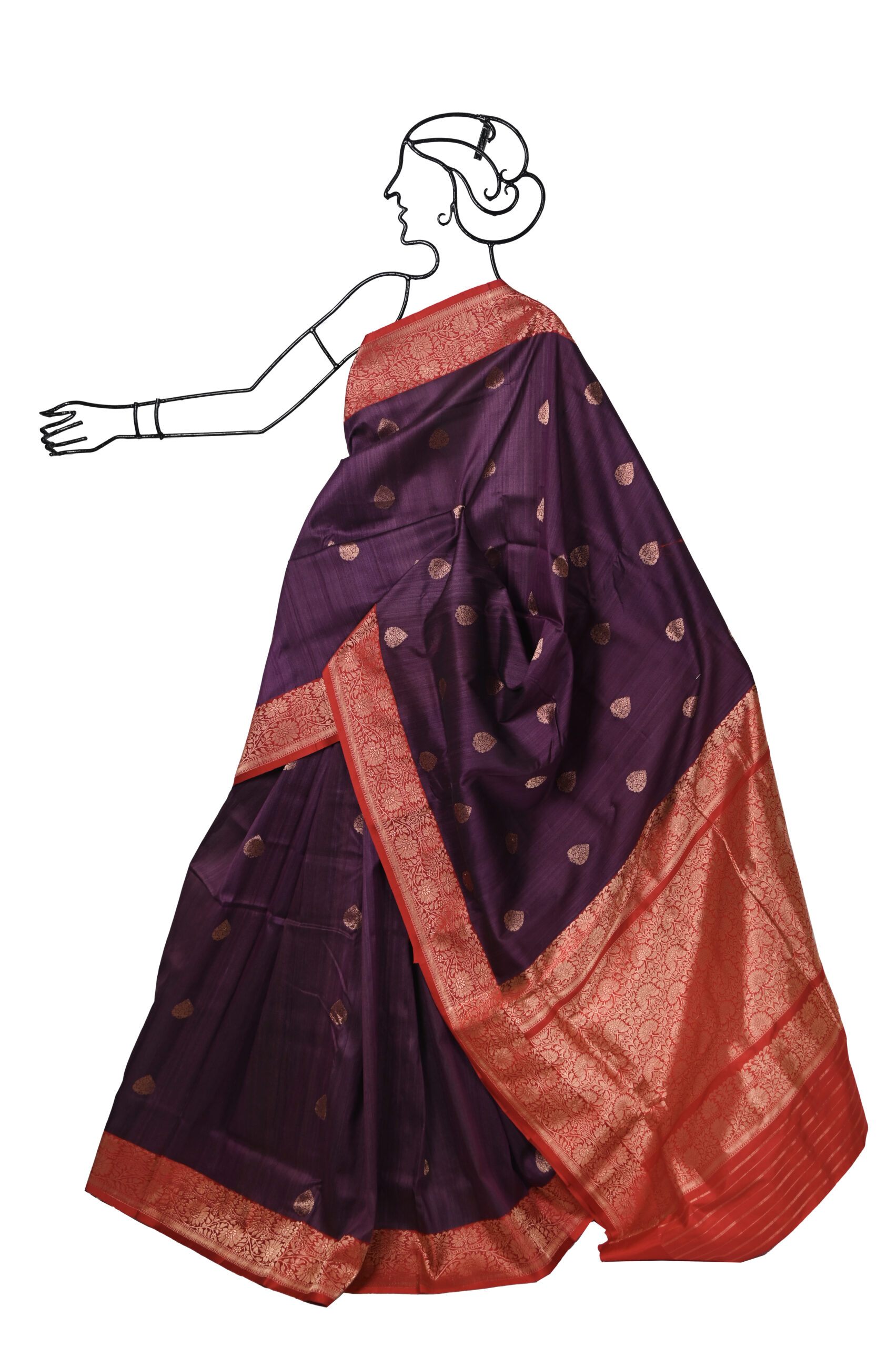 PURPLE TUSSAR BENARASI SAREE WITH ZARI BUTA AND RED PALLU WITH BLOUSE PIECE