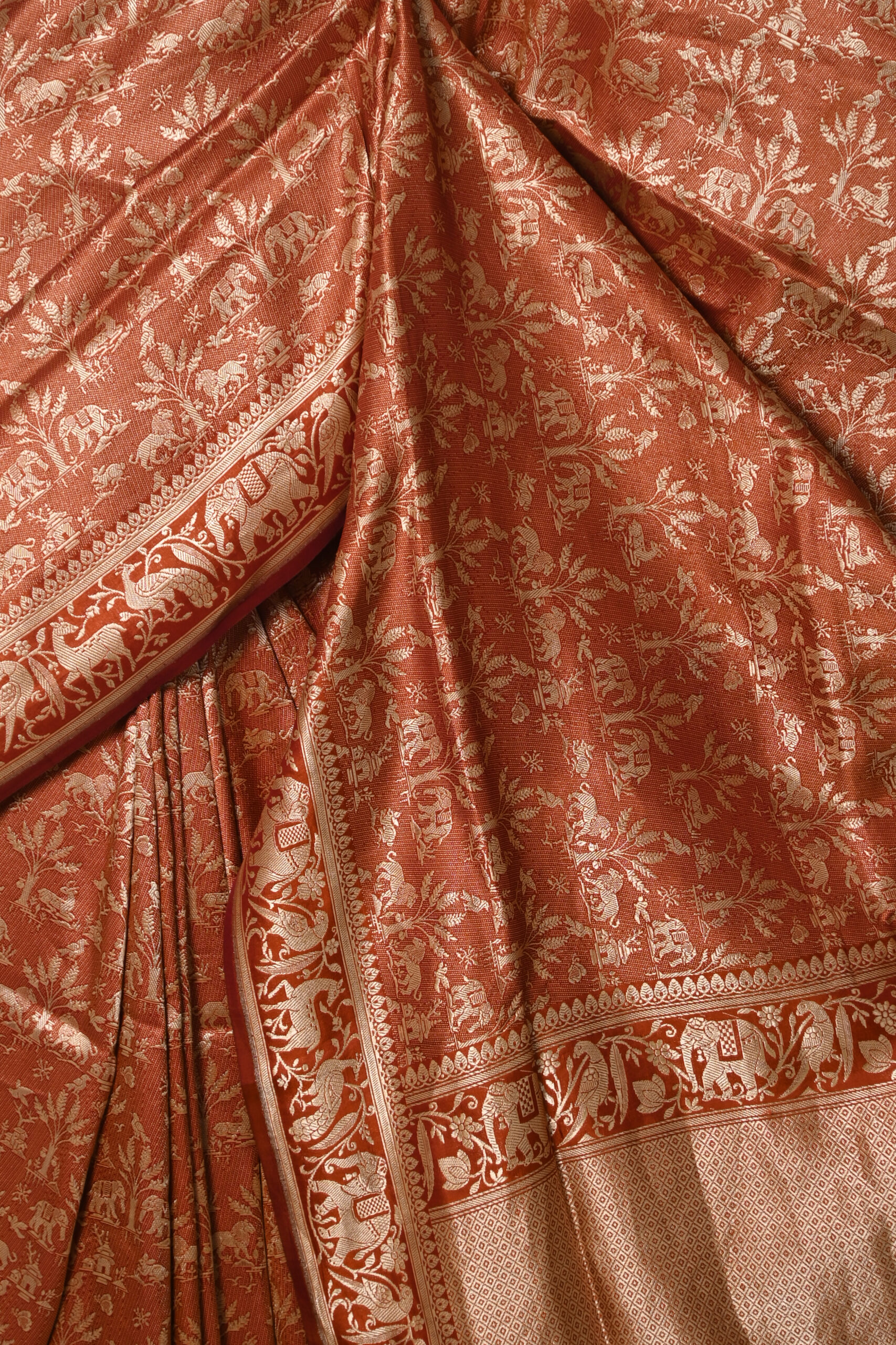 RUST KATAN BENARASI SAREE WITH ALL OVER SIKARGA WEAVE AND BLOUSE PIECE