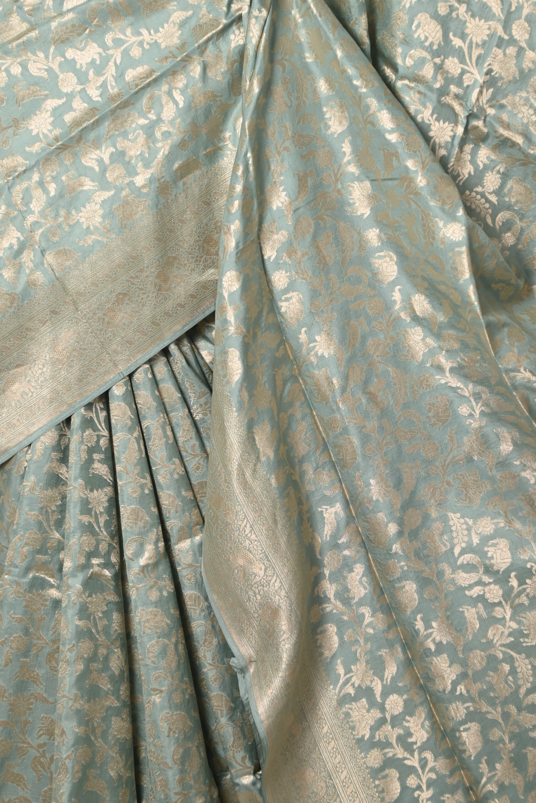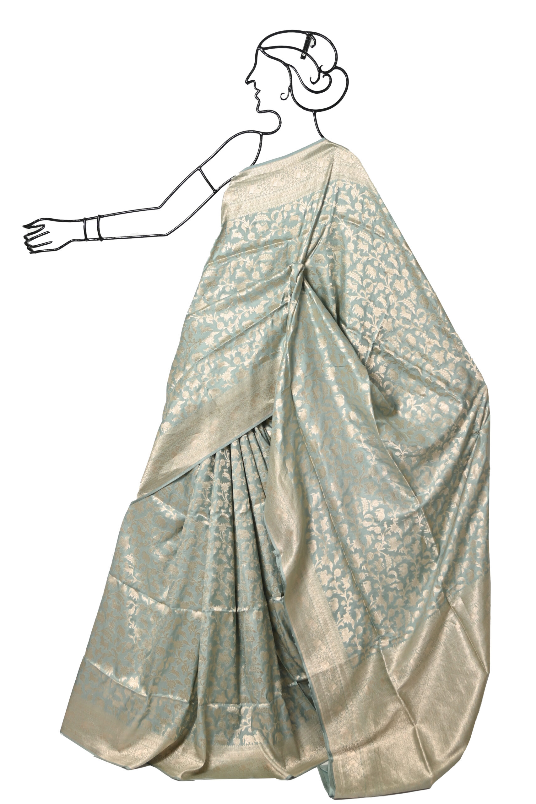 SKY BLUE KATAN BENARASI SAREE WITH ALL OVER SIKARGA WEAVE AND BLOUSE PIECE