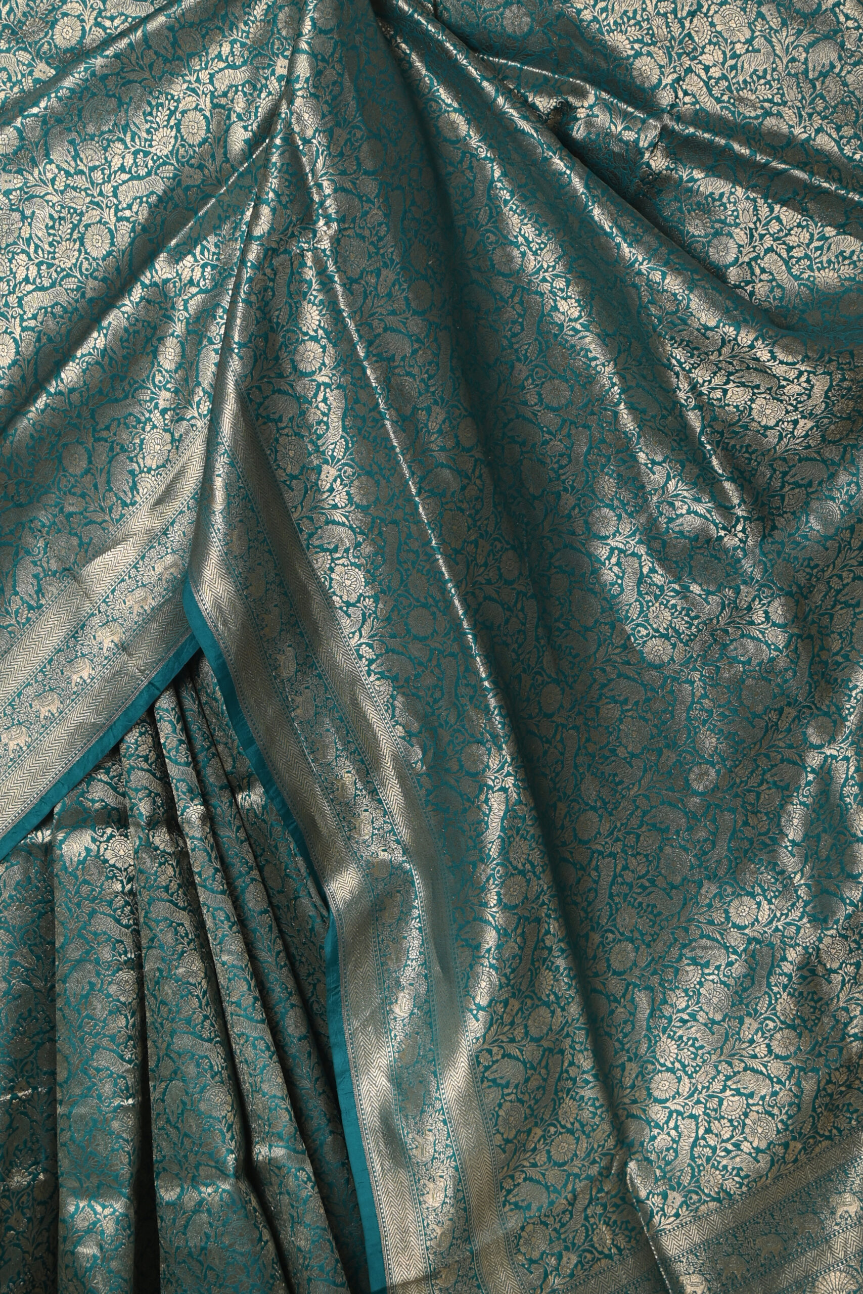 TURQUOISE KATAN BENARASI SAREE WITH ALL OVER SIKARGA WEAVE AND BLOUSE PIECE