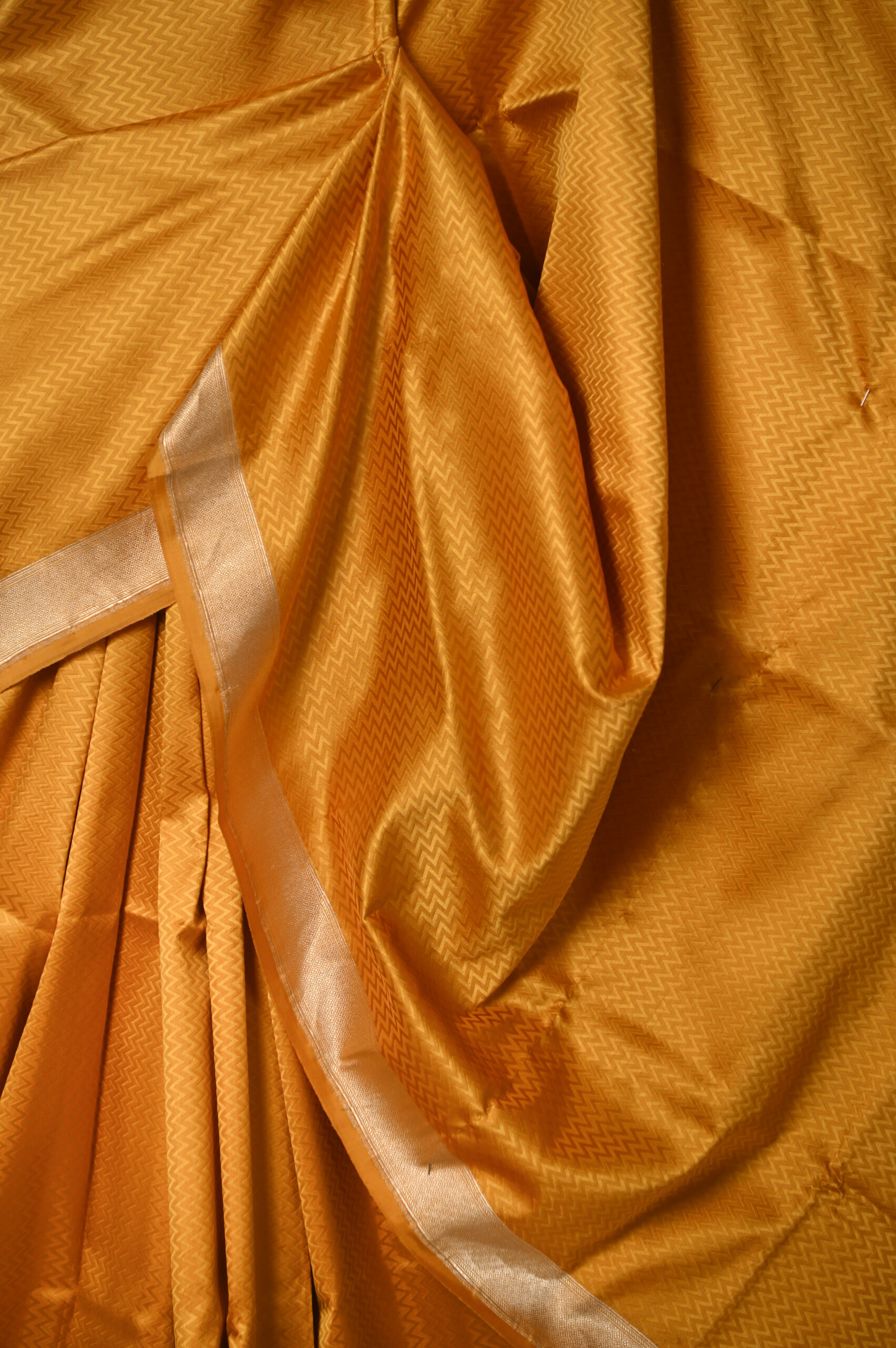 YELLOW KATAN BENARASI SAREE WITH EMBOSSED DESIGN AND BLOUSE PIECE