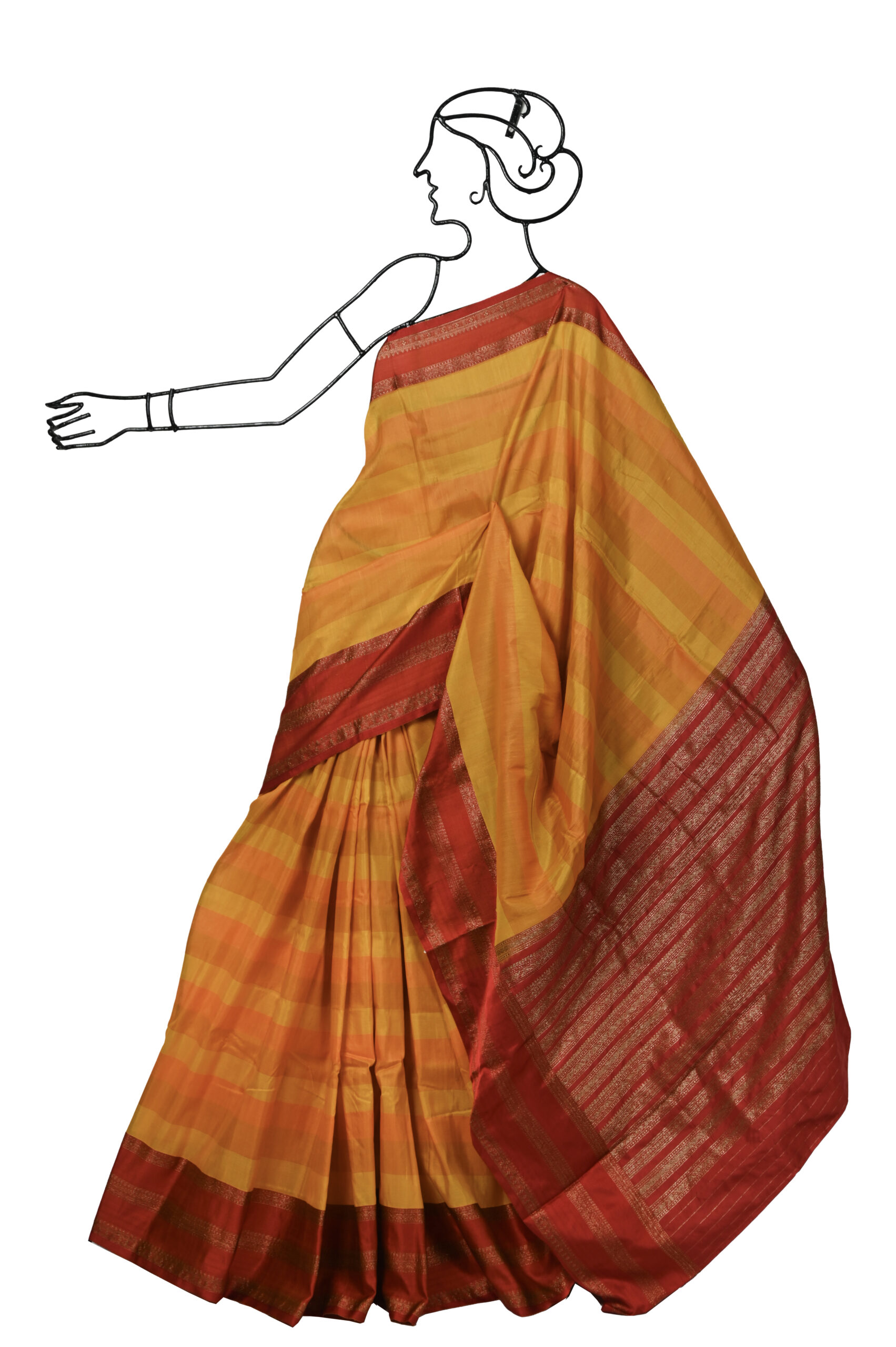 YELLOW TUSSAR BENARASI SAREE WITH MAROON BORDER AND PALLU WITH BLOUSE PIECE